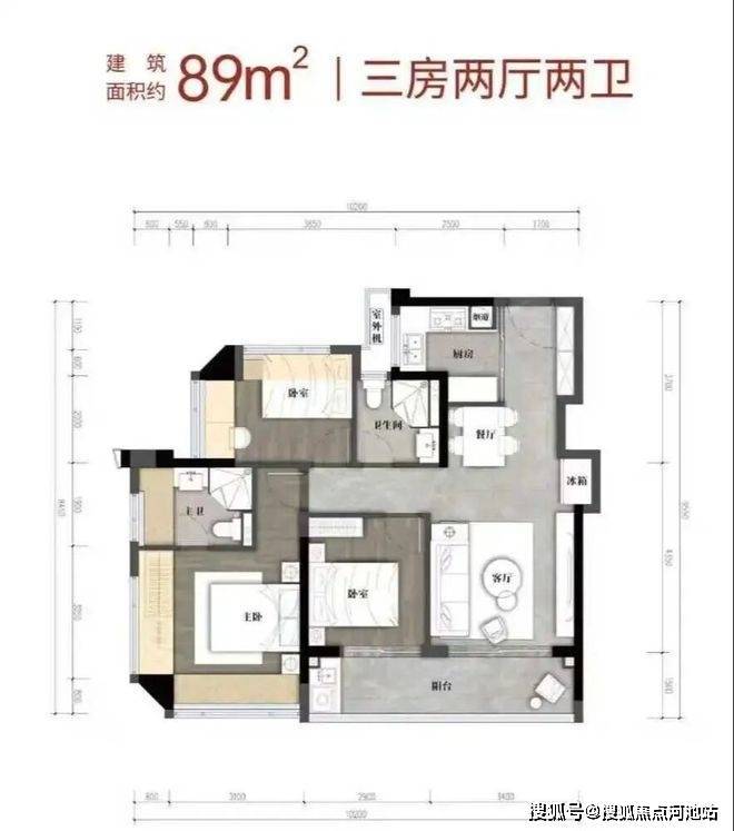 89m²的3房2厅2卫,折后总价335-375万/套,单价3.8-4.28万/m²。