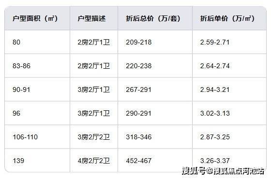 翰林汇2期部分户型的折后价格区间: