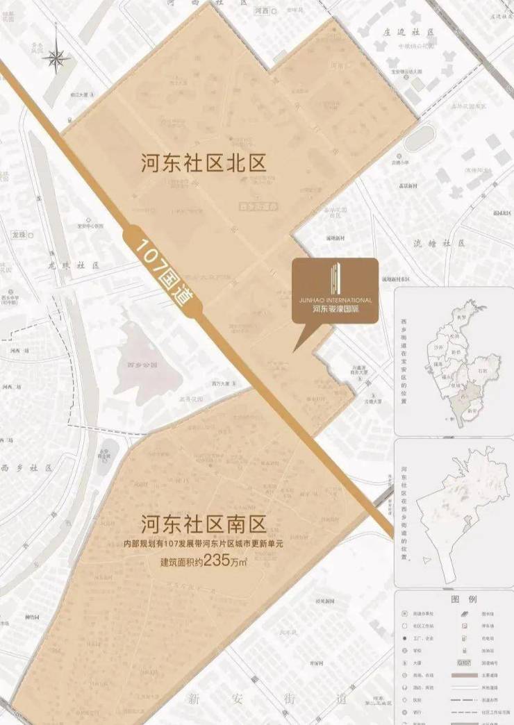 河东社区作为大型社区,分为南北两大区域,打造河东百万大城,其南区规划107发展带城市更新单元,总建筑面积达235万㎡,集办公、商业、酒店、公园等多元业态,带动人流聚集。