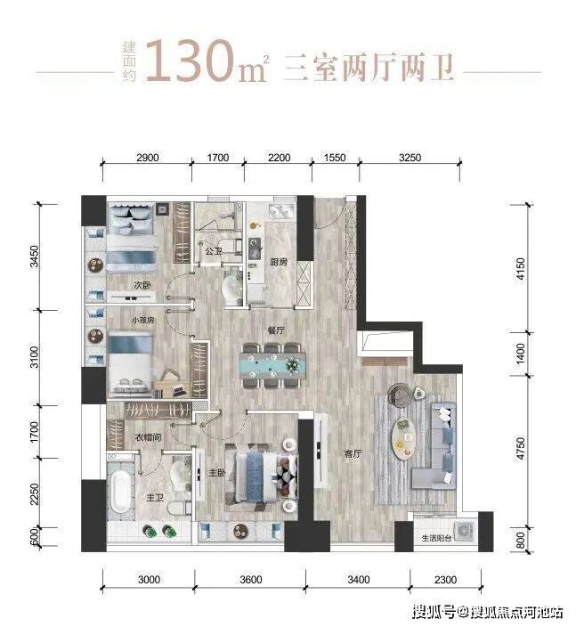 【户型④】北01+02/南10+11:约130㎡三房两厅两卫