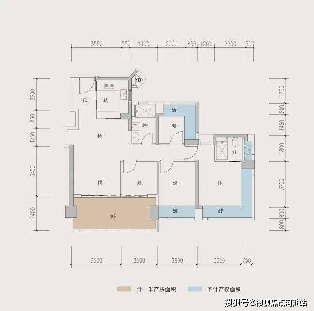 89㎡3房横厅户型使用率,赠送面积达到了22.92㎡,地毯率达到了92.57%,套内加赠送使用率能达到102.58%。