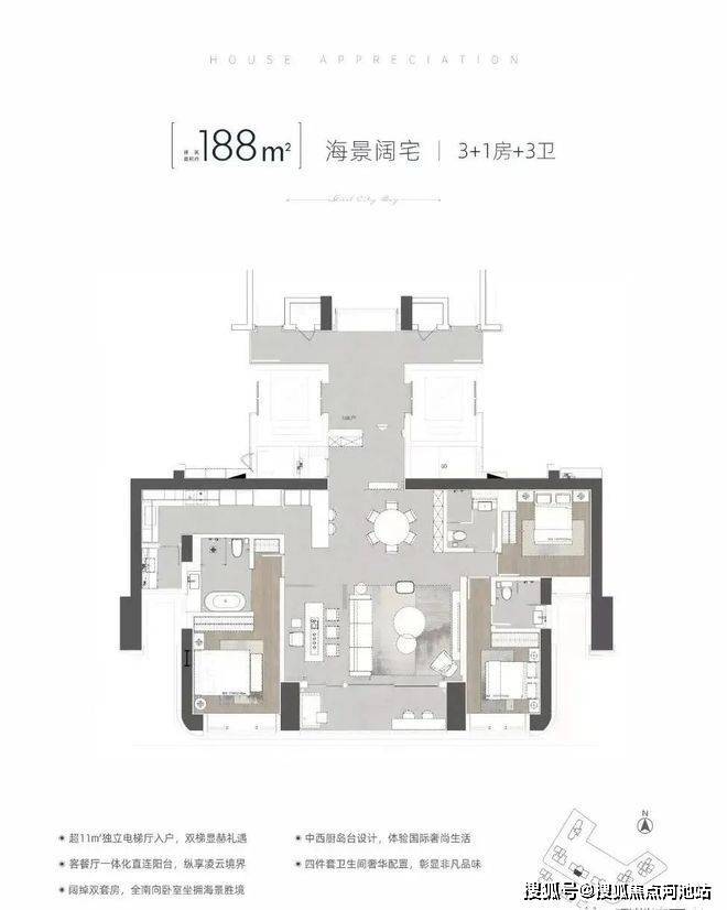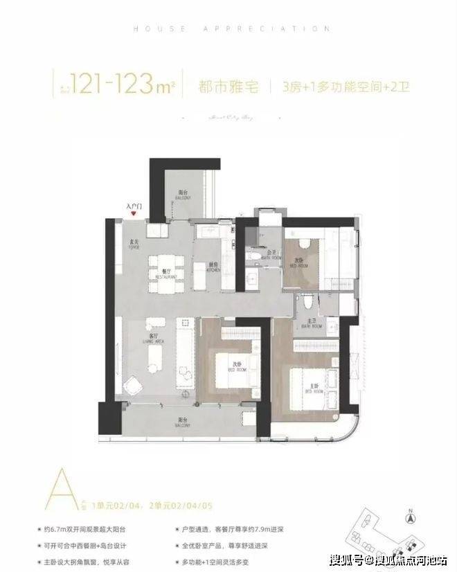 建面约111-112㎡纯正3房2卫:项目首次推出产品!东南朝向看城市景观,主卧带衣帽间+三分离卫浴,动静分区,总价直接砍到1023万起。
