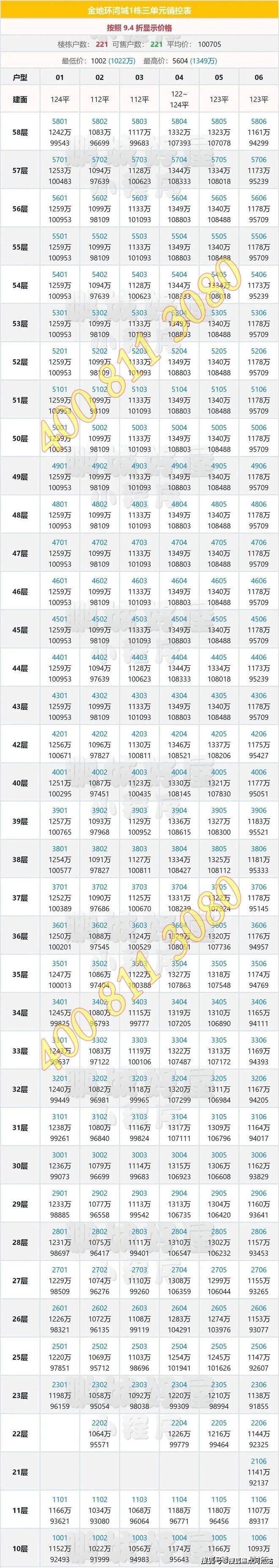建面约111-112㎡ 3房2卫,折后总价1023-1134万;