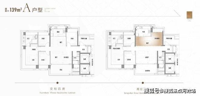 先看咨询量最大的139㎡A户型。原报建是四房两卫,南北通透。