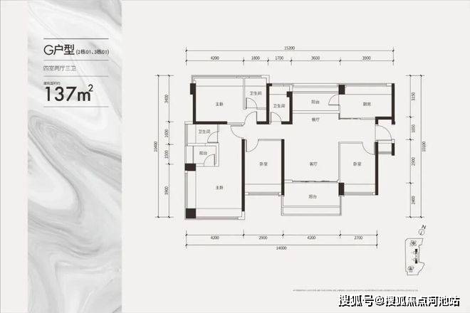 项目户型:108/137㎡奢阔四房