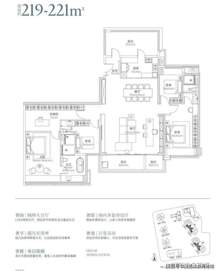 户型出色:120㎡ + 能做四房三卫双套间,公区品质佳,设计合理实用。