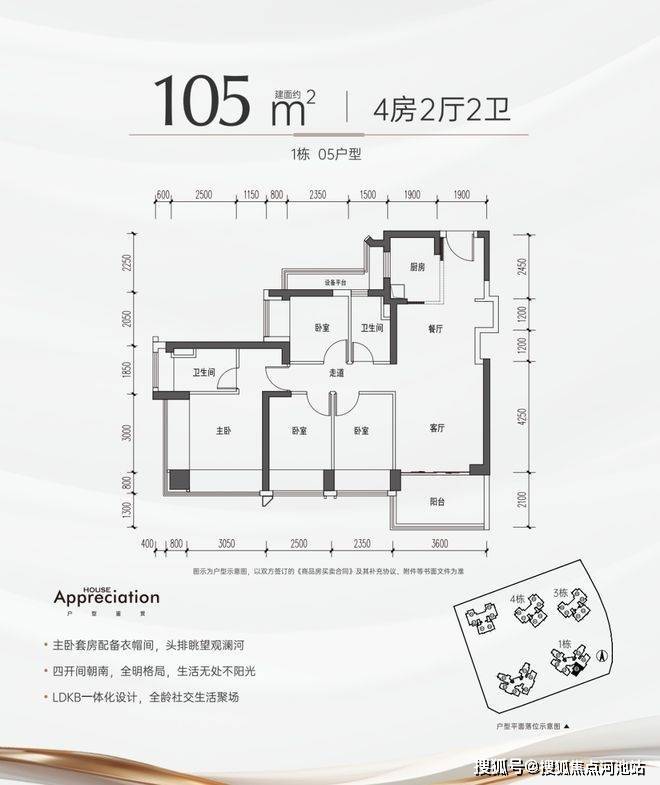 朝向景观亮点,南北通格局,看内部园林安静生活体验,2.5功能区横向采光