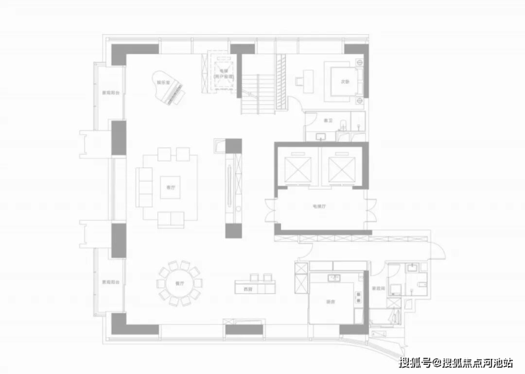 纯粹圈层与私密性:项目为纯大平层社区,户型从233㎡起步,云端复式面积约420-1080㎡,仅限量16席。8梯3户、双梯入户的配置保障了居住的私密性与尊崇感,天然筛选出同类圈层人群。