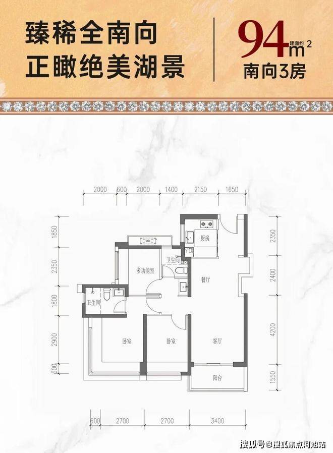约94㎡南向性价三房:折后单价4.52-4.79万/㎡,总价427-452万
