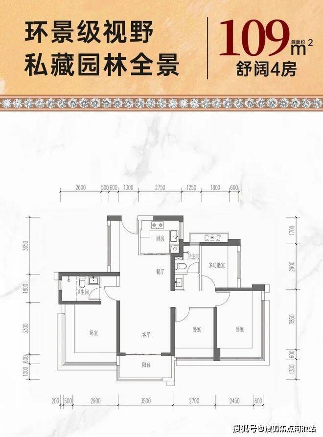 约109㎡双龙抱珠四房:折后单价5.1-5.28万/㎡,总价557-576万