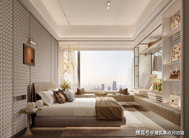 最具亮点的是,该户型有三个卧室配置了L型270°转角无柱飘窗,将空间、采光与视野的奢享尺度推向新境界。既能作休闲喝茶区,也能作梳妆台等功能区。