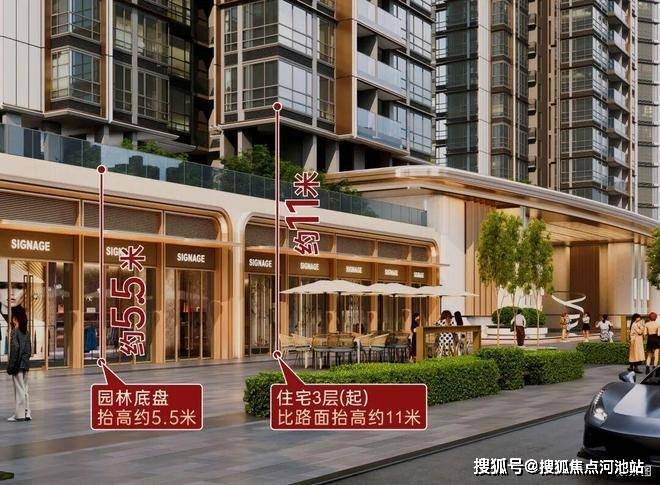 “抬高约5.5米园林底盘+约68米奢阔门庭,从喧嚣城市进入静谧住区。