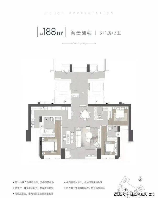 建面约111-112㎡纯正3房2卫:项目首次推出产品!东南朝向看城市景观,主卧带衣帽间+三分离卫浴,动静分区,总价直接砍到1023万起。