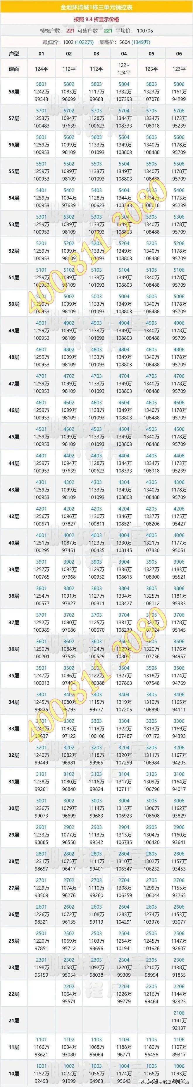 此次加推建面约111-125㎡户型,T6栋,4梯6户,总层高58层,精装交楼。