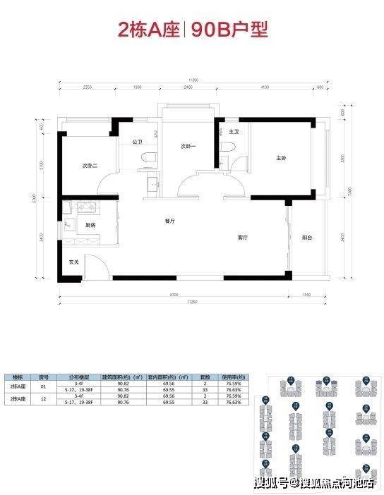 主要为90A/90B两种户型;均位于端头位,私密性较强,采光不错,且配多了一个卫生间;其中,