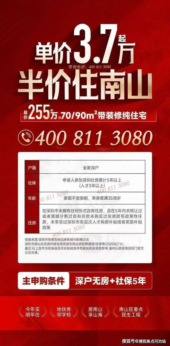 最新消息:深圳南山山樾湾楼盘安居房已于10月24日正式对外开放,本次开盘推出建面约70㎡两房及90㎡三房,单价3.7万/平起!山樾湾项目计划2026年8月31号带装修交楼。如需了解本楼盘更多详情,欢迎来电咨询山樾湾楼盘开发商售楼处免费400咨询/预约电话:400-811-3080(已认证)中介请勿扰,因近期参观的人员太多,本项目营销中心暂不接受临时到访,为不耽误您的行程,过来楼盘现场参观样板房请务必记得提前来电预约,预约看房的话最终房价还能更加优惠,最终价格包您满意!