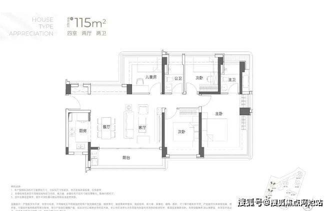 建面约115㎡4房2厅2卫