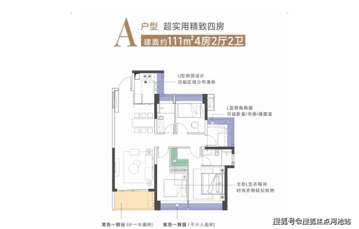 3单元:建面约111㎡四房两厅两卫,A户型