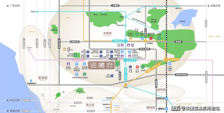 项目自身配建12班幼儿园,项目西侧毗邻深大附属实验中心、东侧毗邻一块九年制教育用地,未来在自家门口即可满足从幼儿园到高中的学业。除此之外,项目1.5公里范围内还分布有华中师大附属勤诚达学校、长圳学校、深圳中学光明分校(在建),凤凰城实验学校。项目周边目前是光明教育资源最为丰富的一个区域,像深实验、华中师大等名校,基本都是可以积分入读的。