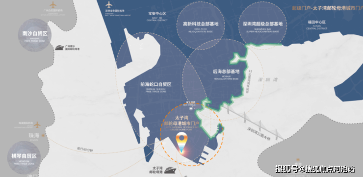 太子湾,是招商蛇口保留的最优地块之一,斥资3000亿打造,联袂全球大师,以170万㎡筑就航母级国际滨海城,一如悉尼地标Darling Harbour,代言城市繁华名片。整个片区规划了70万m2的高端商务集群,其中一栋382米超甲级写字楼将成为新地标。片区还规划有超五星级酒店、旗舰商业、多所国际学校、国际医院等,几乎包含一座城市的所有功能。