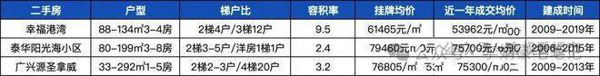 二手房方面,近一年成交量区域top3的「幸福港湾」和「泰华阳光海小区」、「广兴源圣拿威」,近一年成交均价在约5.4-7.5万/㎡之间,挂牌价在6.1-8万/㎡之间