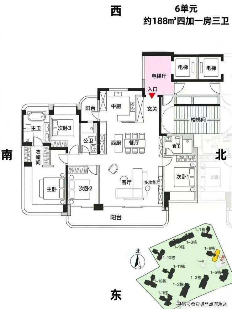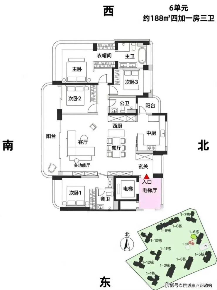 6栋,24层,3梯3户,约188平,可售69套。