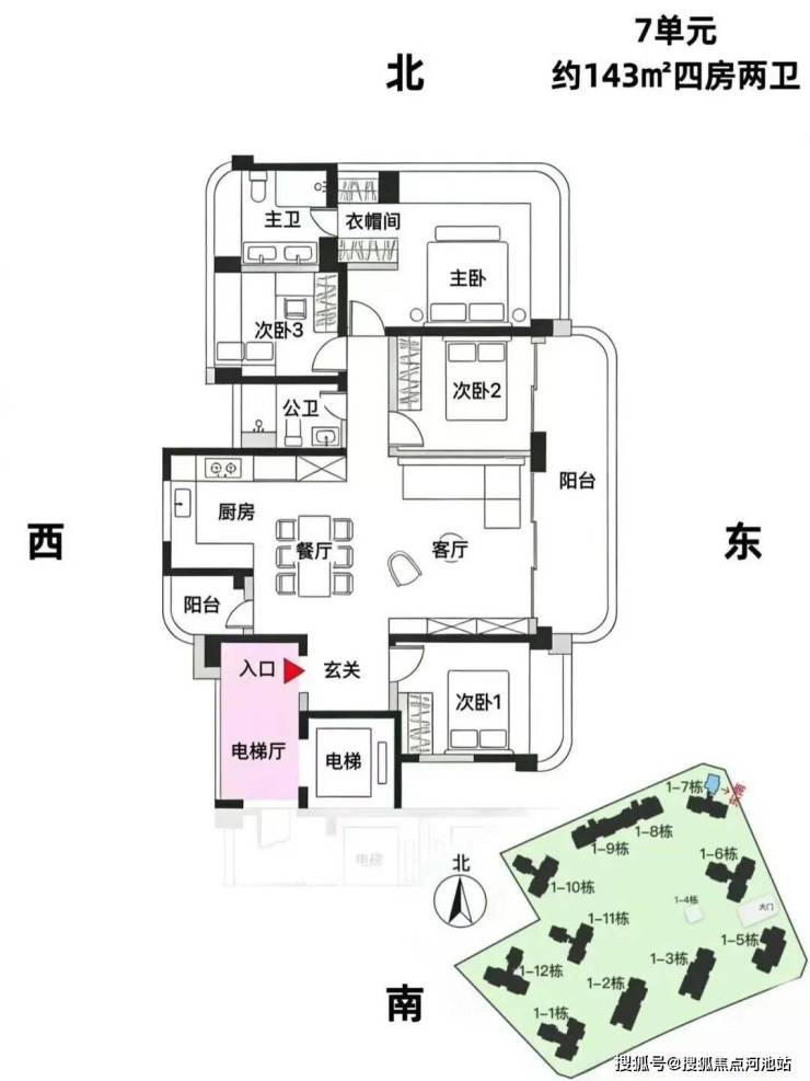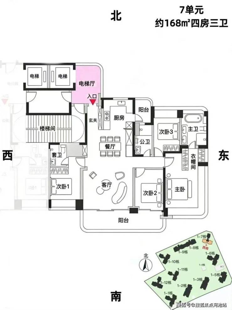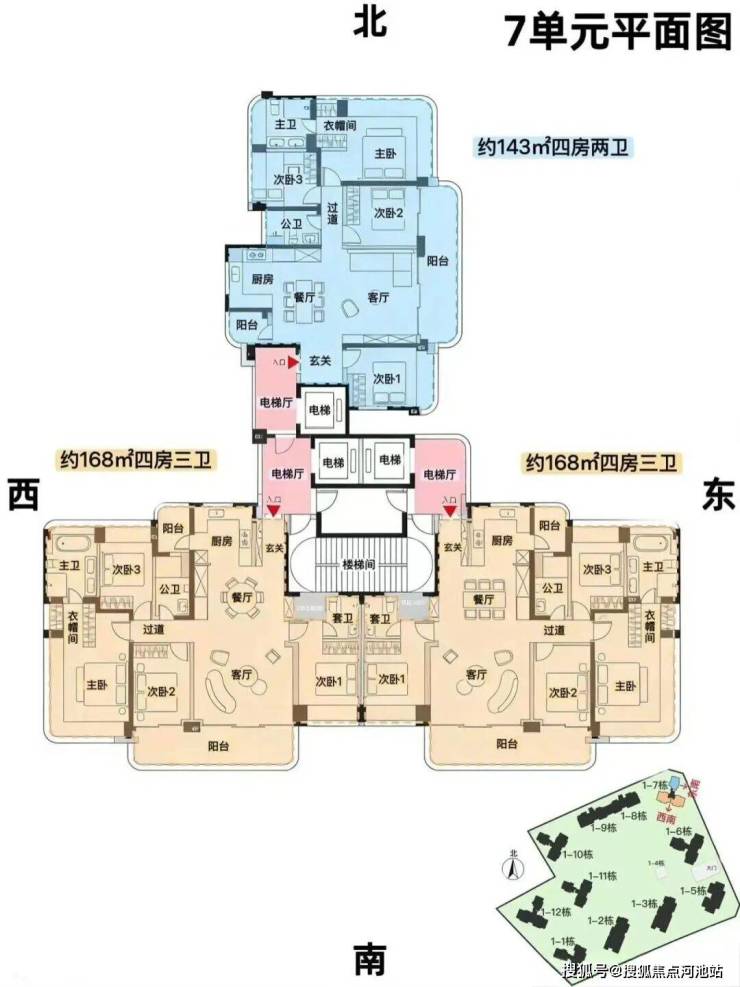 7栋,24层,3梯3户,约143/168平,可售69套。