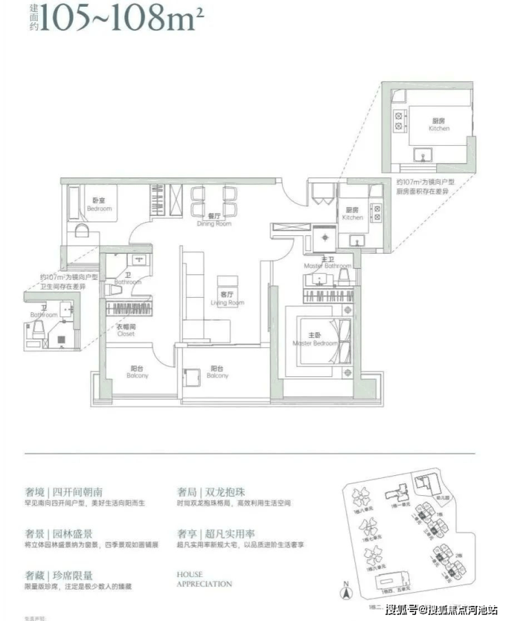 户型出色:120㎡ + 能做四房三卫双套间,公区品质佳,设计合理实用。