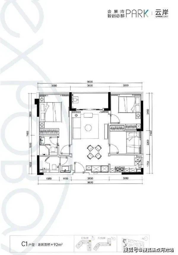 【C1户型:92㎡】房型:三房两厅两卫朝向:T5、T6(正南)户型优势:端头位、双面采光、主客分区、无敌景观 (瞰河)