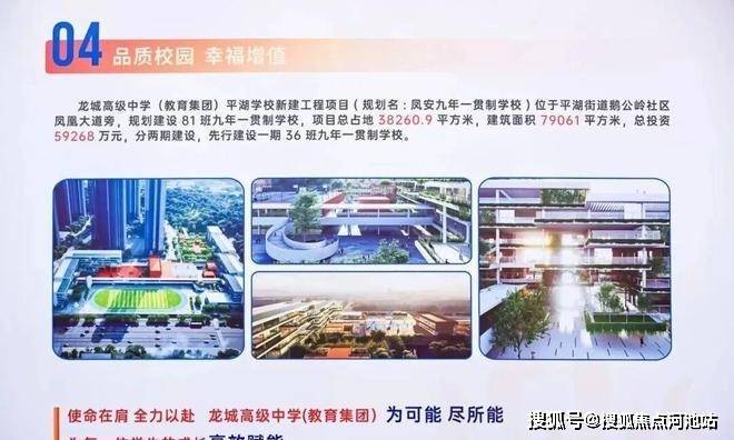 项目内配建 2所幼儿园,西侧规划建设龙城高级中学平湖学校,覆盖 81班(含小学、初中)。