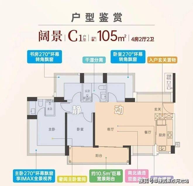 产品方面,大户型产品都用上了南北双阳台设计,主卧沿用新规270°大飘窗,连小户型儿童房也用上双飘窗,通风采光效果绝佳,预计得房率高达100%。
