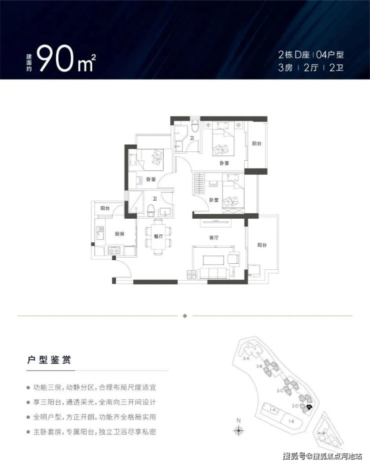 爆款78㎡三房:竖厅+三开间朝南,厨房带小阳台,总价300万出头。