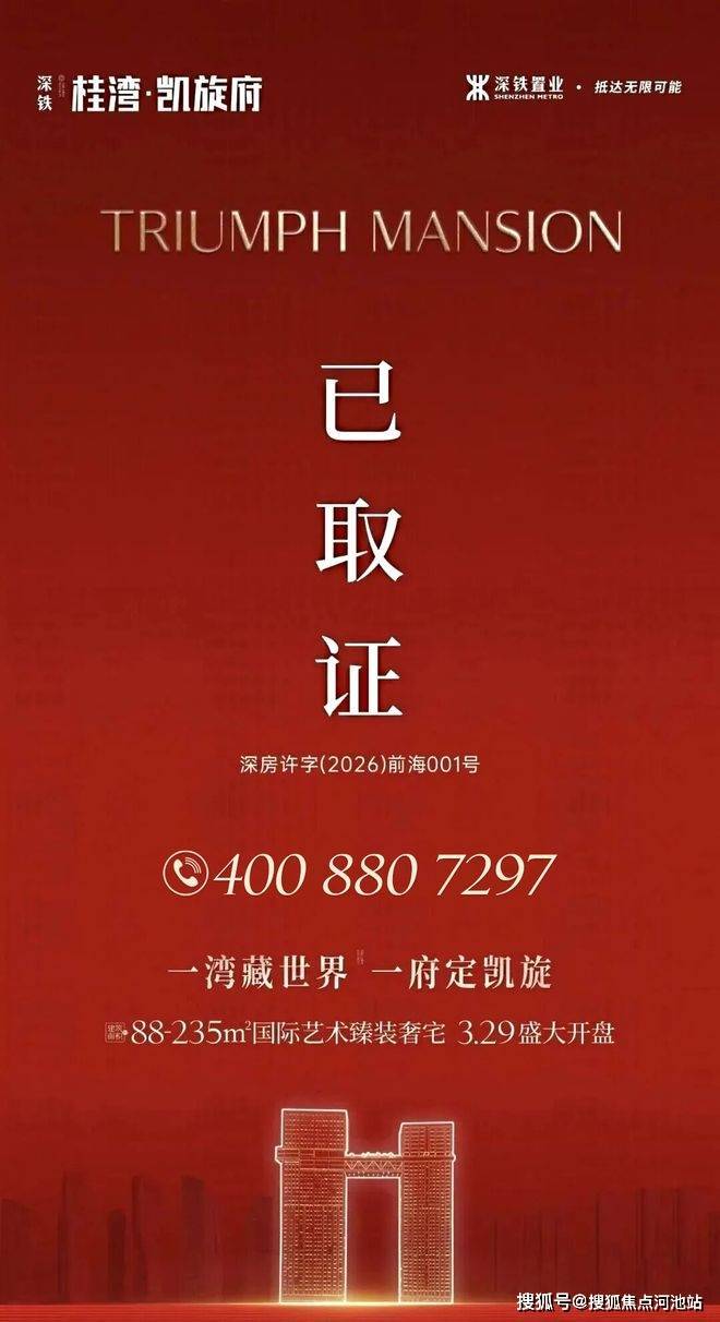 最新消息:深铁 前海时代三期住宅收官之作——深铁 桂湾凯旋府,项目第61栋住宅产品正式取证入市,推出254套新品,备案均价约10.5万/㎡,折后均价仅约9.2万/㎡,最低总价639万起!冻资+开盘双重折扣,综合约88折,3月24日已启动意向登记,3月29日公证摇号选房。想入主前海核心区的朋友,这下机会来了!