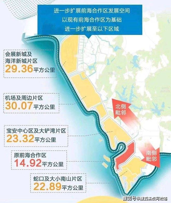 前海8倍扩容,会展海洋城正式纳入前海,前海发展能级显著提升,汇聚海港、空港、综合保税区、国际会展中心,创新资源要素和头部企业集聚,擎动湾区发展。