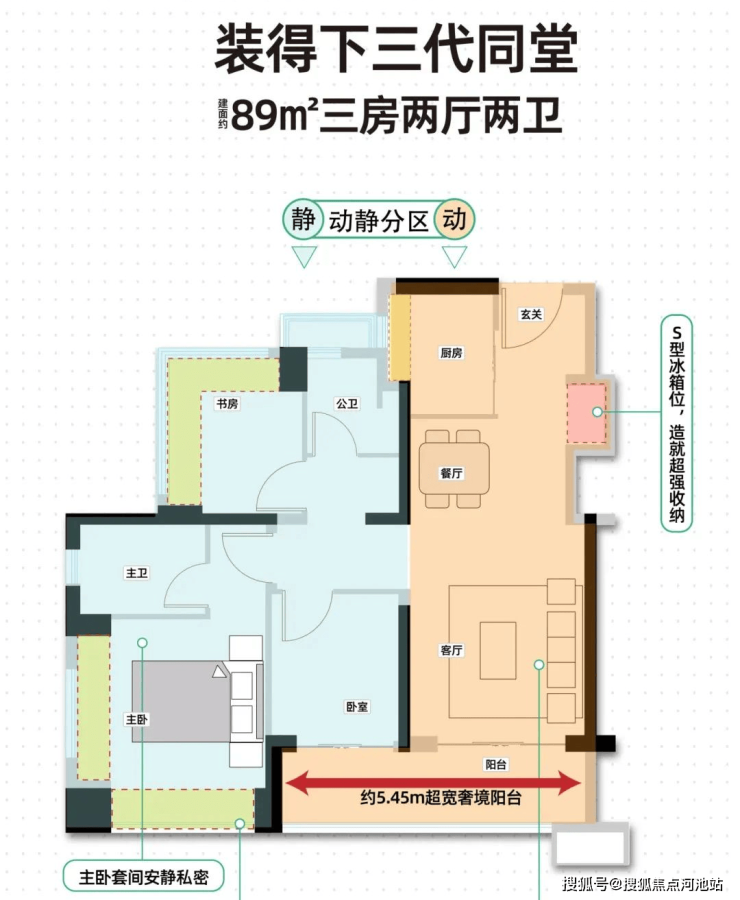 6月28日,高区实体样板房已盛大开放。其中,“89㎡横厅户型”成为精研三代同堂需求的创新范本: