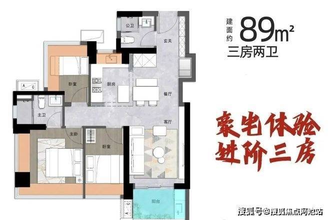 【约89㎡3房2卫】