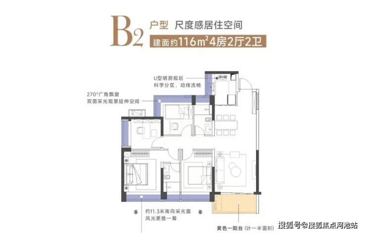 3单元:建面约116㎡四房两厅两卫,B2户型