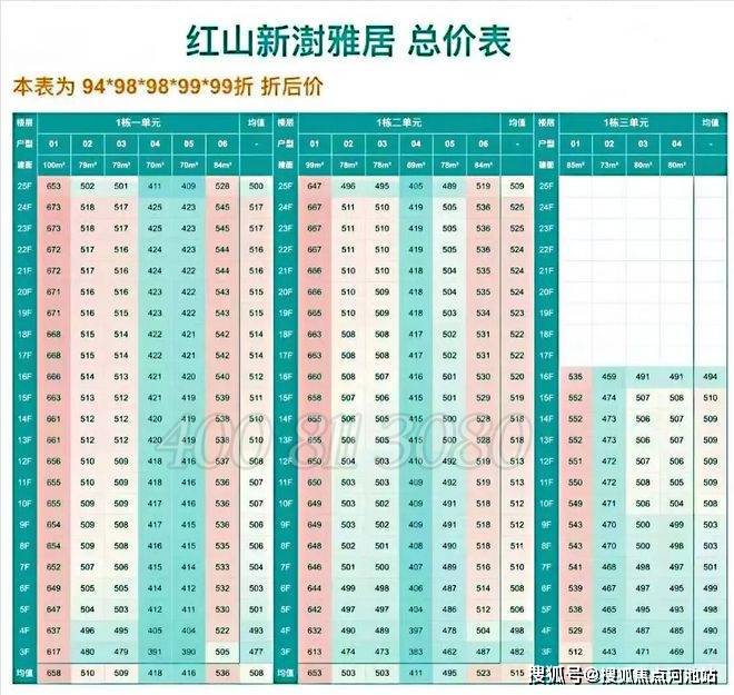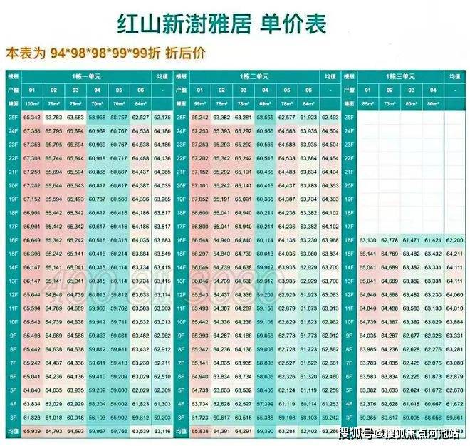 下面是联发新澍雅居本次开盘备案价表: