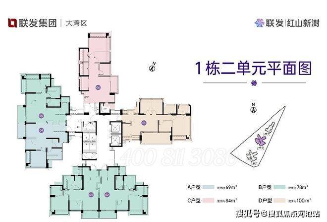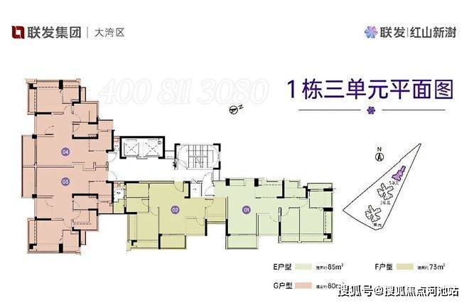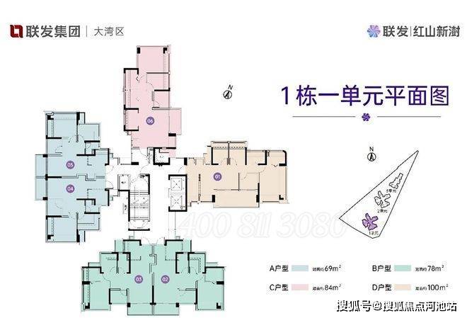 联发·红山新澍雅居1栋1-2-3单元户型分布图: