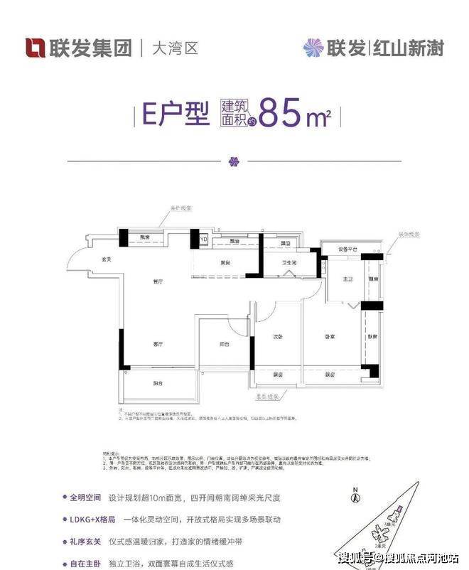 采用横厅南北通透格局设计,独门独户有私用公区,客餐厅一体化,客厅3.4米开间,LDKG+X空间一体化,动静分区。主卧双飘窗设计,独立玄关,U型大厨房,厨房烟道外置。赠送双阳台一半面积加8面飘窗加1个设备平台,得房率超100%,是红山板块改善客户的首选户型。