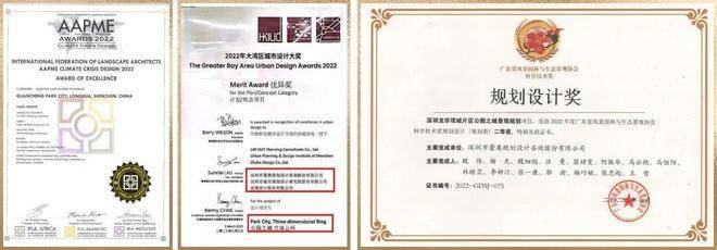 国内外选评载誉无数,区域国际铸就战略高地。问鼎国际ILFA顶级荣誉以及荣获2022年大湾区城市设计大奖、广东省风景园林与生态景观协会科学技术奖规划设计(规划类)奖项。