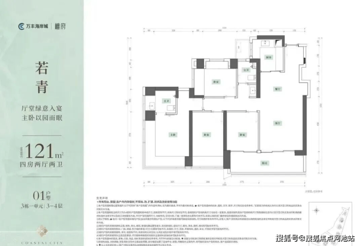 本次推售的万丰海岸城檀府(北地块),总占地面积约1.89万㎡,总建筑面积约17.96万㎡,计容建筑面积约12.87万㎡,容积率6.79,绿化率40%,共由4栋46-47层住宅组成,其中3栋1单元/2栋2单元商品房45层,3栋2单元商品房46层,2栋1单元47层,规划1所12班幼儿园。
