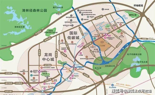 坪地绿环、香沙公园(规划中)、龙岗湿地公园、松子坑森林公园等超1800万㎡城市绿肺环绕