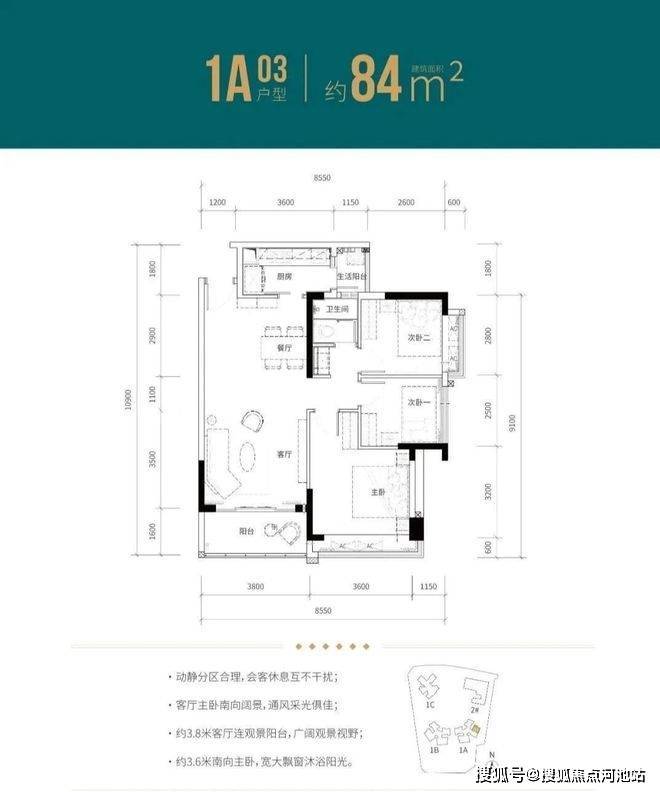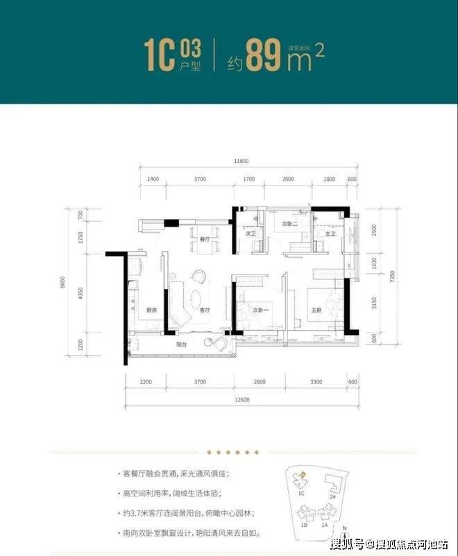 建面约82-89㎡ 舒居准现房,户型格局方正,约3.6-3.8米开阔客厅,使用率极高。