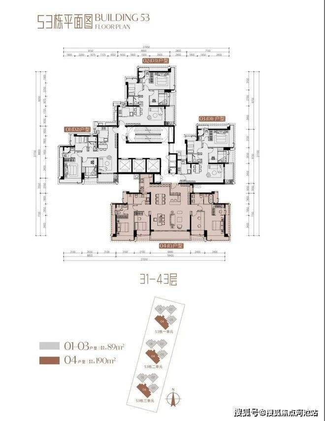 其中还未出售的还有52-2栋,约256套,180套小户型,60套120㎡三房,16套大户型。以及53-3栋,5-29层为三梯五户的89㎡三房户型,31-43层为三梯四户,其中3户为89㎡三房,1户为190㎡四房。这一栋景观绝佳,89的01以及29楼以下的0405户型以及190㎡高楼层是可以看到海景的。
