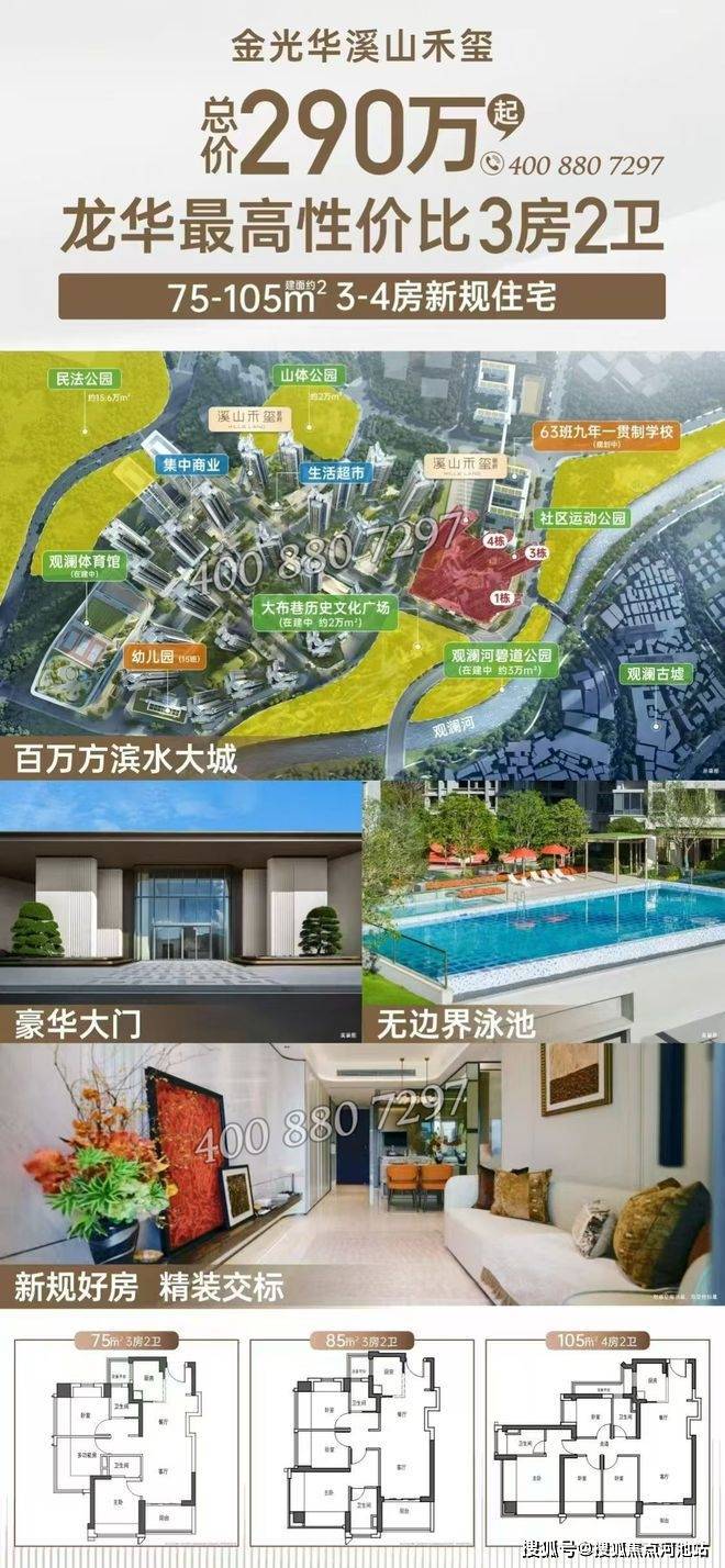 全龙华集团在龙华区唯一面积75㎡住宅做到三房两卫,仅限10个名额 先到先得!约75-105㎡臻装3-4房,龙华观澜又一超百万大城—金光华溪山禾玺!得房率104%!