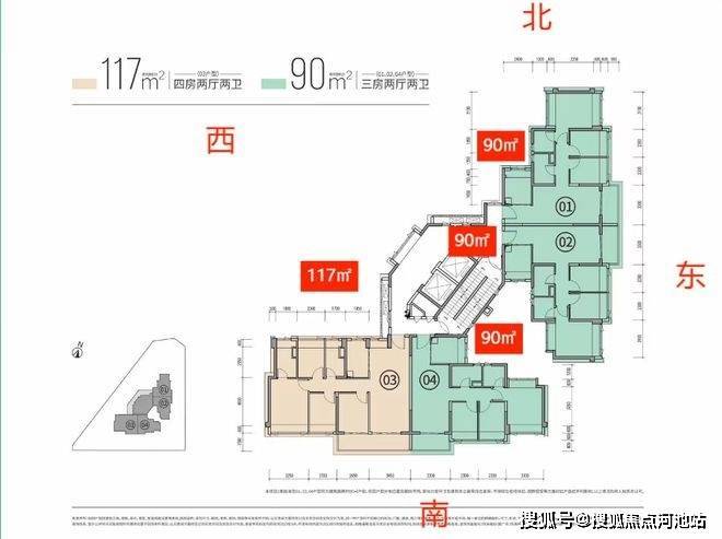117㎡4房2卫共30套,户型方正,同样采用竖厅设计,动静分区明显。双开间阔景阳台,大视野奢享更多阳光和惬意,户内多飘窗设计,不仅增大了通风采光,美观度和实用性更是大大提升。主卧套房设计,衣帽间+卫浴一应俱全,更具私密性,采用双飘窗设计,避免暗浴的同时,扩大了室内视野,还增加了使用空间,让生活被赋予更多的可能。