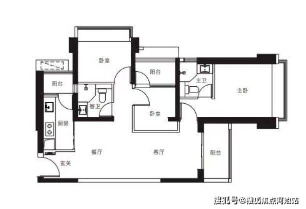 【3栋4栋03户型107㎡3房2卫】客厅横厅朝南带阳台,主卧朝南,2房朝北 单价区间:7.2-7.5万 总价区间:770-805万