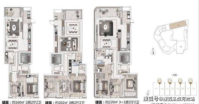 A栋产品:160-200-220㎡ 2-3+1房云端美寓