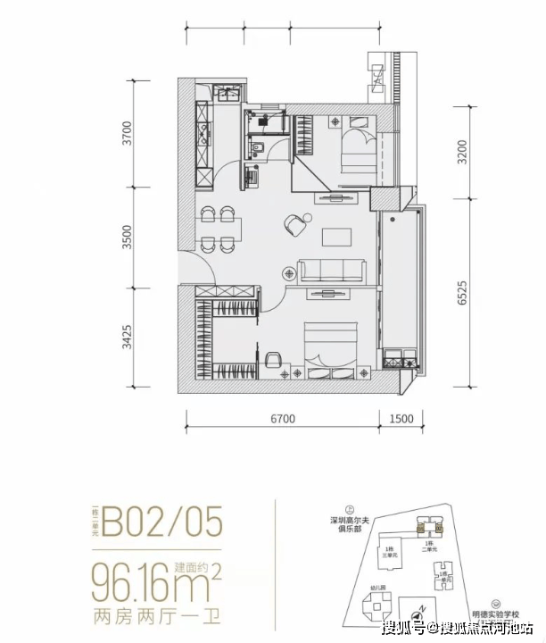 其中,96㎡为2房2卫,适合单身或年轻夫妻;